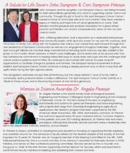 Please join us to honor John Sampson and Cori Sampson Vokoun as our 2025 Life Savers and Dr. Angela Pannier as our Woman in Science.  There will be a brief program starting at 5:30pm.  Heavy hors d’oeuvres and drinks included with ticket purchase.